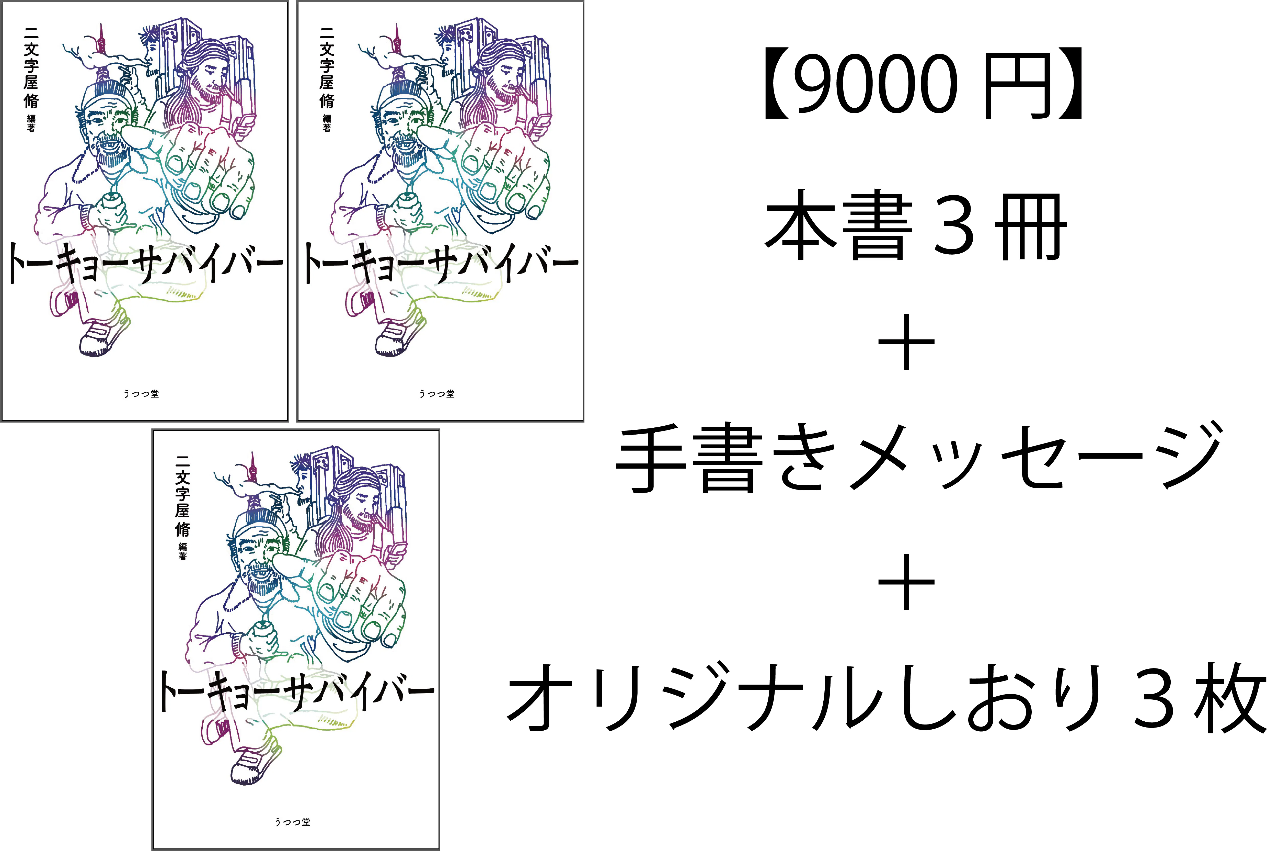 ・9,000円(書籍3冊、手書きメッセージ1枚、オリジナルしおり3枚)