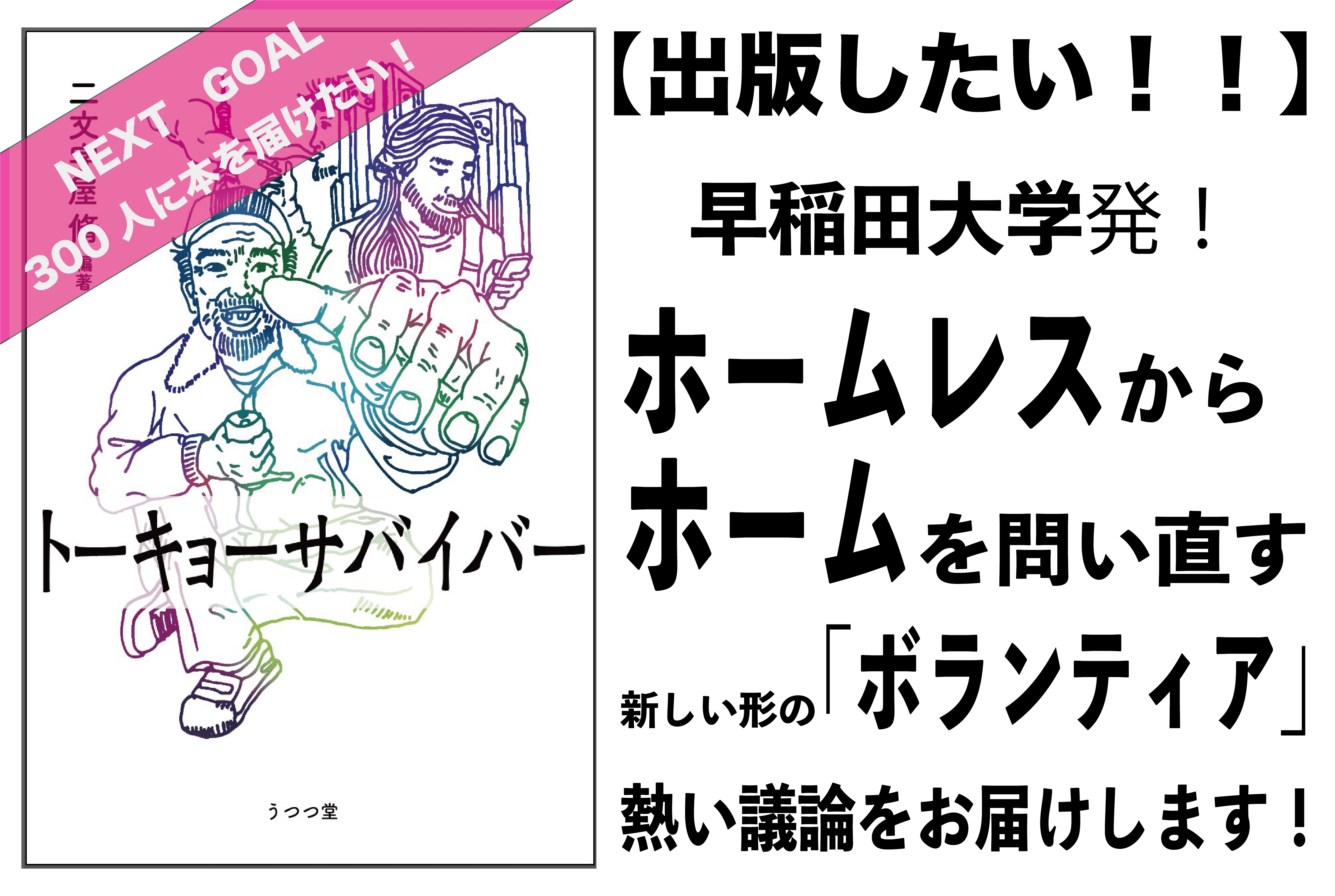 2022/03/18 01:20クラウドファンディングにご支援いただきました皆様、ご支援ご協力、誠にありがとうございました!皆様のおかげで140万円を超えるご支援が集まり、本書も無事、発刊することができそうです。表紙デザインは、このように変更になりましたwちょっと不気味に感じる方もいるかもしれませんが、どこかあったかい。私たちとホームレスの方々との距離感を表現できれば、との思いで作りました。本書を手にとって読んでいただければ、また違った角度で、視点で、ホームレスの方々と接せられることでしょう。そして、なにより、私たち自身が「アタリマエ」だと疑うことすらなかった視点を得られるはずです。つい先日、印刷所に原稿を入稿いたしました。刷り上がりは4月の頭になります。4月上旬には皆様のお手元に本書をお届けすることができそうです。今しばらく、お待ちいただければと思います。この度は、ご支援ご協力、誠にありがとうございました。『トーキョーサバイバー』が日の目を見ることができるのも、皆様のご支援あってのものです。重ね重ね、感謝いたします。追記:クラウドファンディング募集ページにて、noteで「トーキョーサバイバー編集後記」を毎日連載すると宣言しておりましたが、プロジェクト終了時点で#9までしか更新できなかったことをお詫び申し上げます。今後も少しずつ更新していきますので、よろしければご笑覧ください。『トーキョーサバイバー』の外伝というかサブテキストのようなものでもあるので、本書と合わせて読んでいただければ、より一層、本書の理解が深まると思います。(杉田研人拝) もっと見る