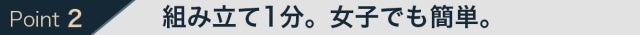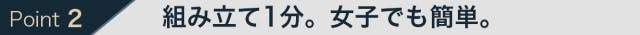 フレームを展開するだけだから、女子でも簡単に組み立て可能。
