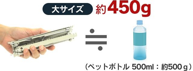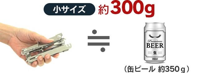 巻いて畳める「メッシュ網」と、折り畳み式の「フレーム」だからこそ、重量はわずか300g(小サイズ)。