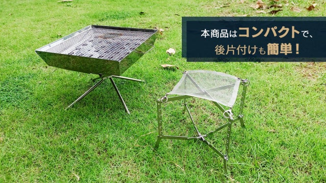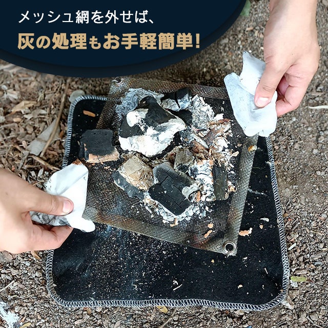 また、メッシュ網を外せば、灰の処理も手軽に行え、ステンレス製により錆びに強く、丸ごと水洗い可能。