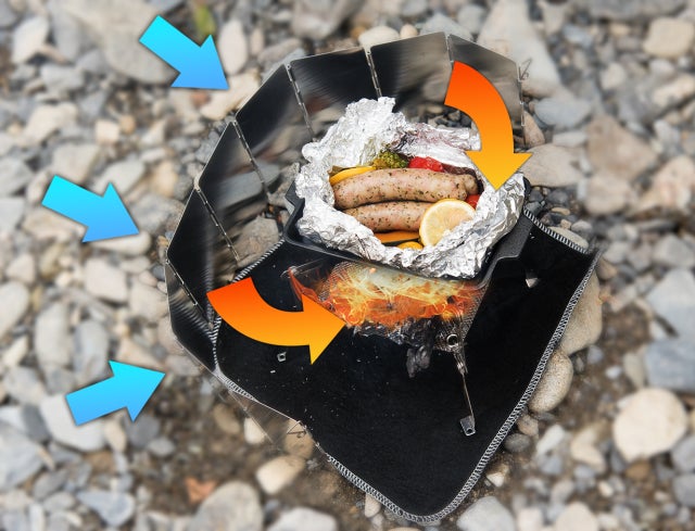 風の強い日や気温の低い時には、付属の風徐板で火力を補助します。
