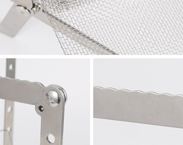 なお、BBQなどをすると、肉の脂でステンレスメッシュ網が汚れますのでタワシや金属ブラシでこすり落としてください。