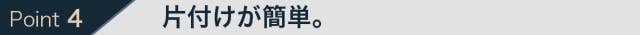 収納袋はL字開閉で、収納しやすく短時間で片付け可能。