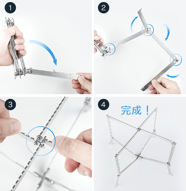 また、従来の焚火台では、強度を重視するがあまり、がっちり構造で重く持ち運びが大変。