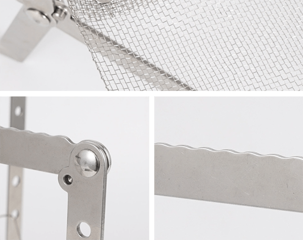 フレーム(ボディ)は強度のあるステンレス201、メッシュ網は食品に適したステンレス304。