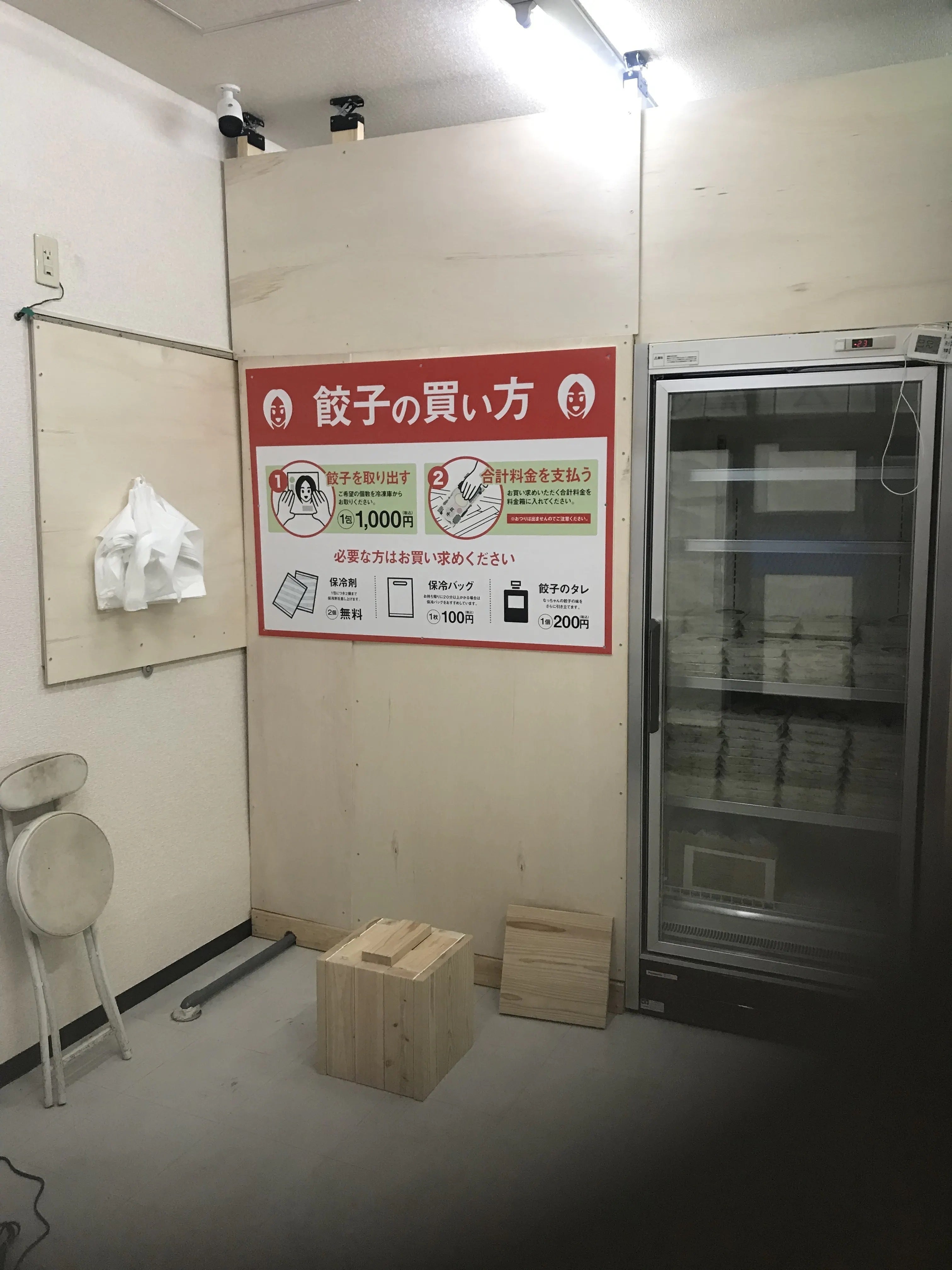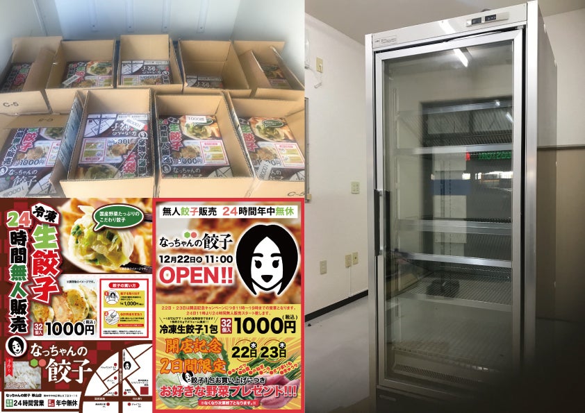 妻は足が不自由で、店頭や配達での販売が困難な為、昨年の12月22日に【なっちゃんの餃子】無人販売店をオープンしました。