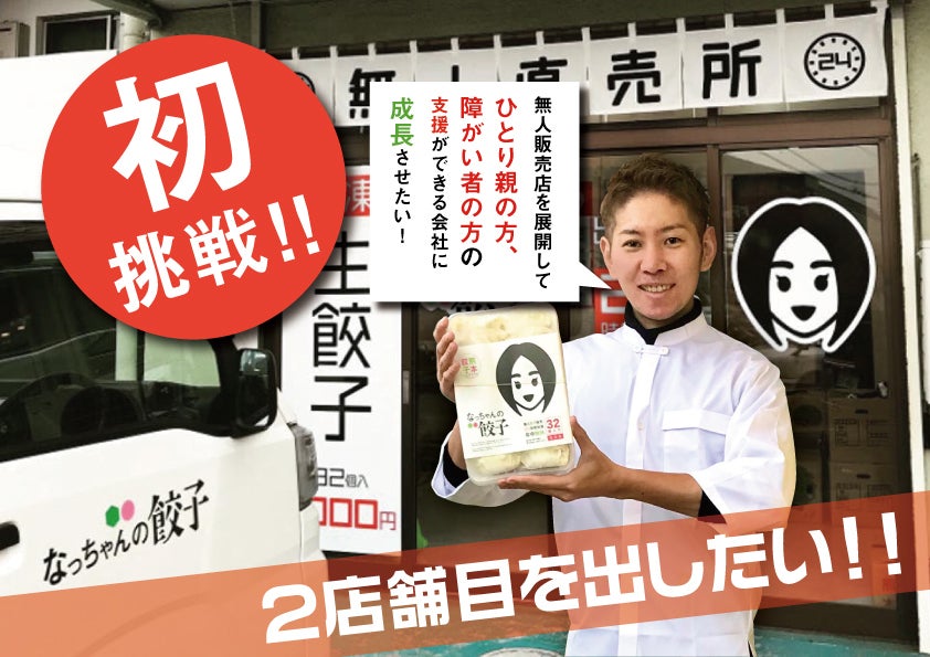 ひとり親、障がい者の方への支援の一環として、比較的簡単な餃子の製造補助等の雇用の創出ができるように、無人販売店の多店舗展開をしていきたいです。