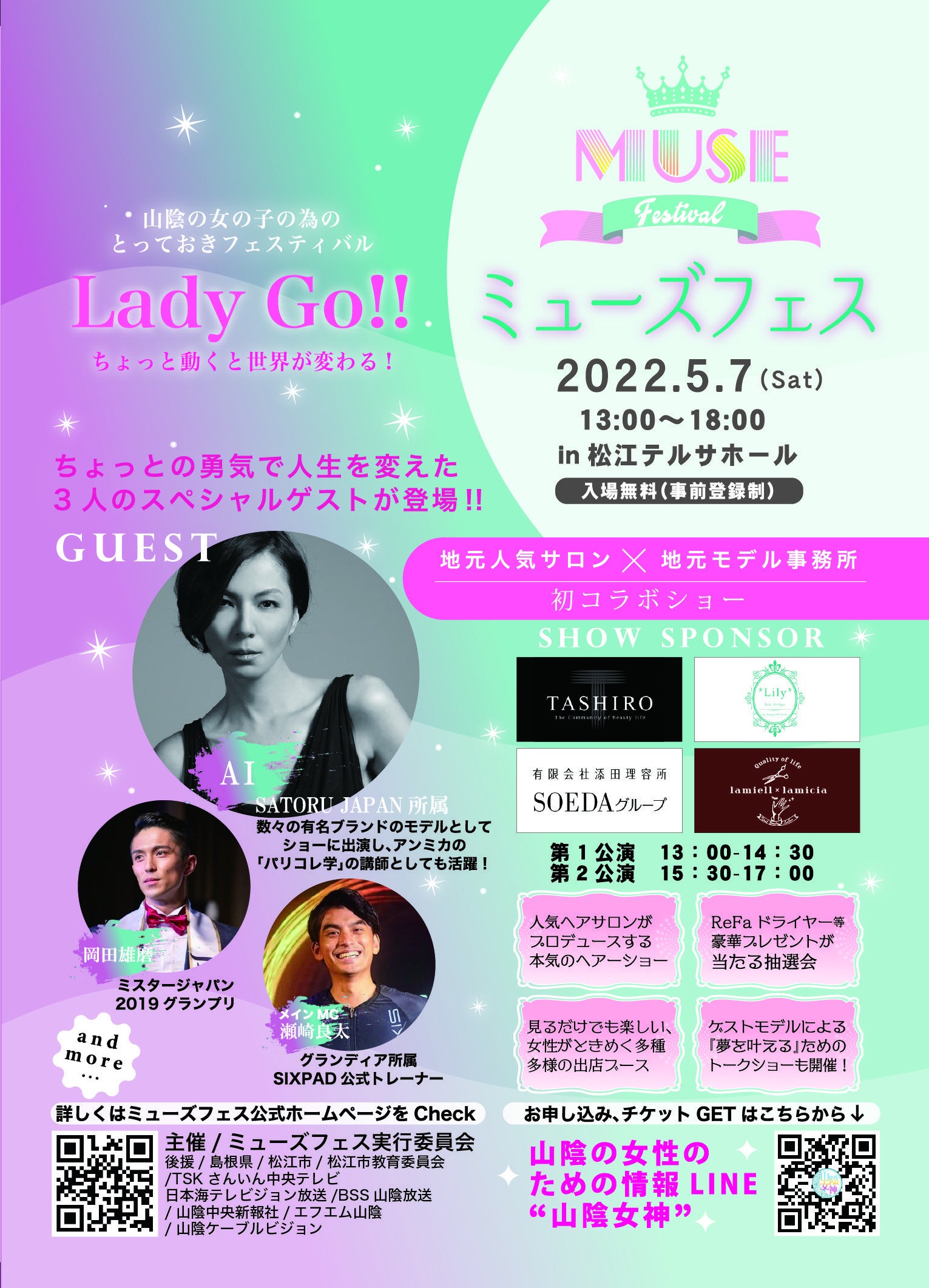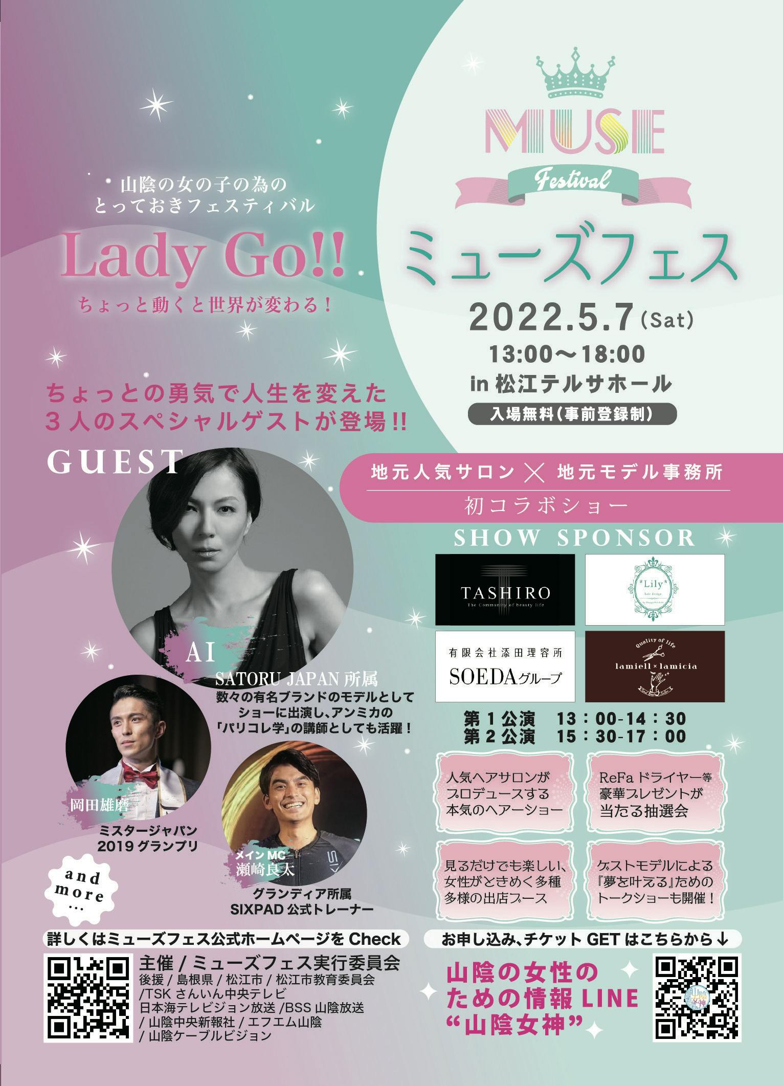 今回は、美容やファッションに敏感な山陰の女性達を無料で招待し、性別の違いや障がいのあるなしに関わらず、女性の憧れるキラキラしたショーのステージを行い山陰の女性達が活気づくことを願って頑張ります!