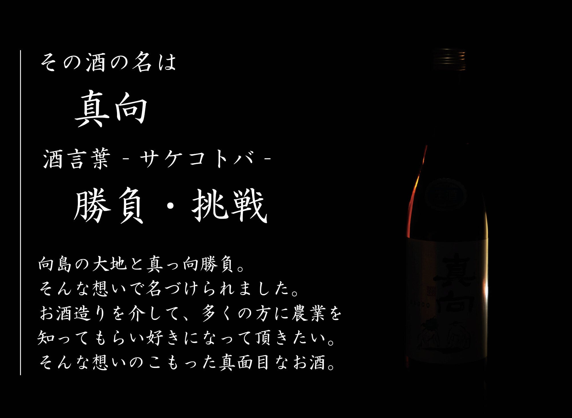 真向は私たちがこだわり抜いた地酒の銘柄として与えられた一つの名称ですが、この2文字には壮大なプロジェクトやその想いを込めています。