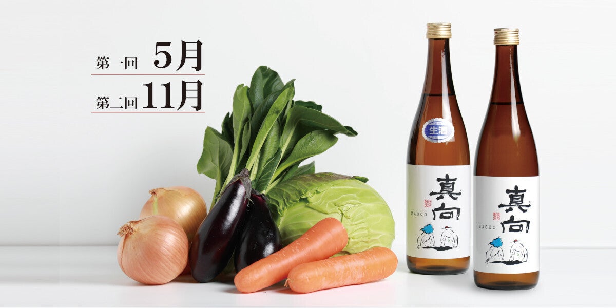 このリターンでは2度、高宮農園直送お野菜と一緒に真向の呑み比べセットをお楽しみ頂けます。