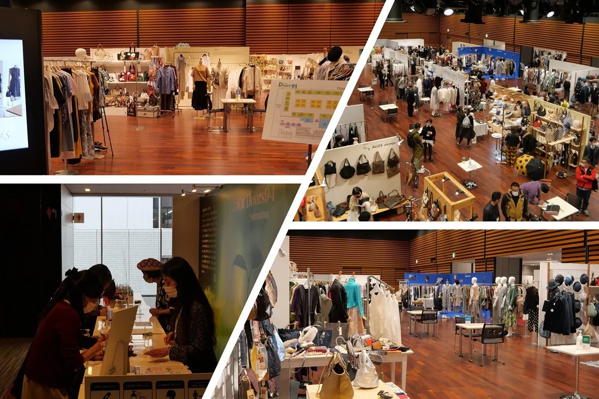 レディースアパレルとファッション雑貨の卸し企業様を集め、主にアパレル小売専門店様向けの合同展示会として、年2回、5月と11月に東京・大阪で開催しています。2006年11月からスタートして今年で16年目。次回5月は合同展Doors96になります。 つまり、96回目の合同展Doorsです。