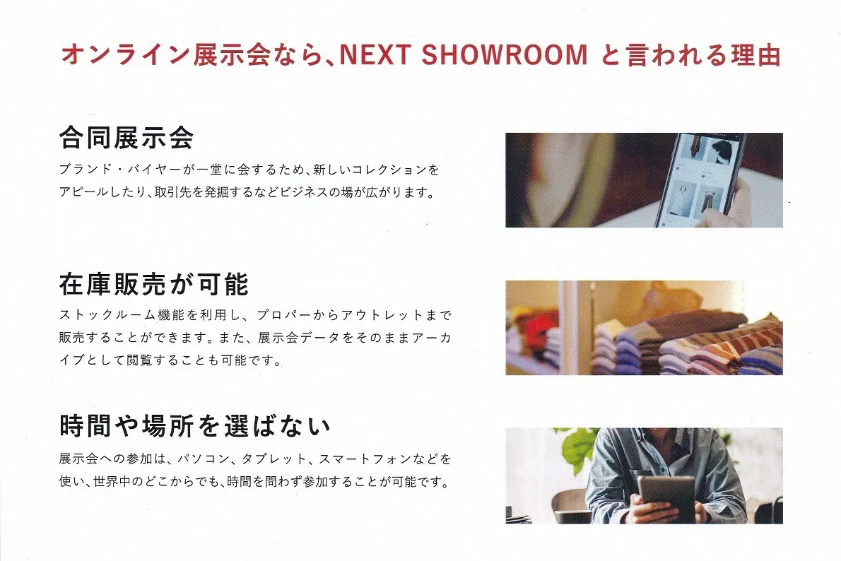 オンライン合同展サイトの「NEXT SHOWROOM」にもその動画をUPして、国内外に向けて発信します。(2月から多言語化サイトになります)