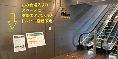 ② 33,000円支援の場合の【チャレンジ・トルソー】は、支援者様のオリジナルブランド商品もしくは学生様や個人の方はその作品を1体のトルソー(足無し)に着用させて、お客様が会場に入られるエスカレーターの踊り場に配置します。商品(作品)のブランドロゴや商品説明・企業名(作成者)・連絡先をA2サイズのボードにしてトルソーと一緒に並べます。(なお、セットアップ準備に直接来られてもよいですし、写真で指示頂ければそのように当スタッフが着せます。終了後はお送り頂いたパッキンなどでご返送致します。)