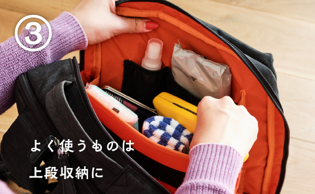 また、立体的な収納構造により、バッグのスペースをバランスよく活用できるため、バッグの中で起きる荷物の偏りも抑えられます。