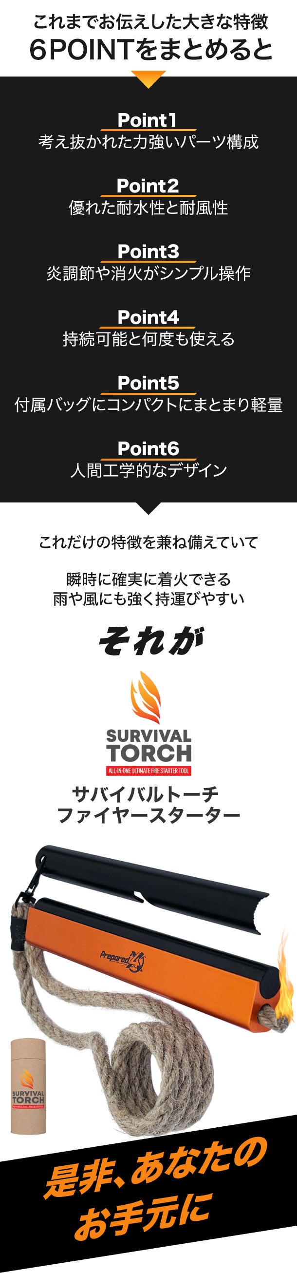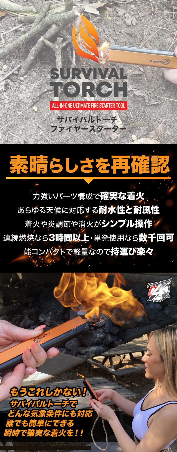 PREPARED4Xではサバイバルトーチを、高品質かつ機能性とデザイン性を兼ね備えた商品として開発しました。