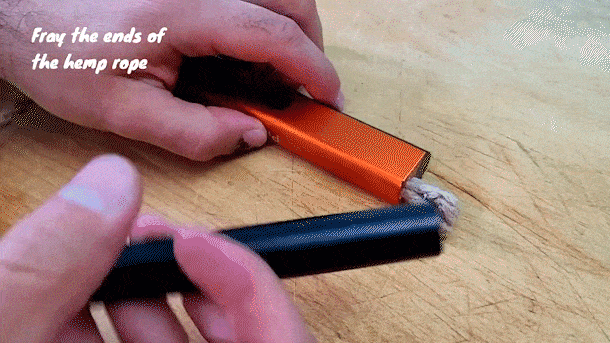 ※麻ロープの端が完全にほつれていることを確認する。