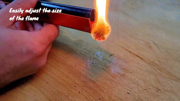 5. ロープの端に火を点けたら、アルミニウムハウジングから出ている芯の長さで炎の大きさをコントロールします。