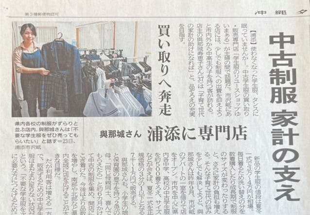 私が学生服のリユースのビジネスを知ったのはTVの情報番組ですが、このビジネスは沖縄ではとても必要だと感じました。