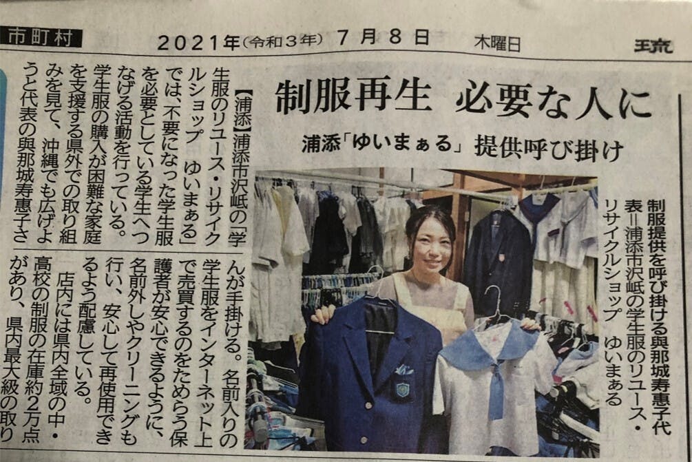 「ゆいまぁる」では、そんな制服たちを次の子供達へ繋げるお手伝いをされています。