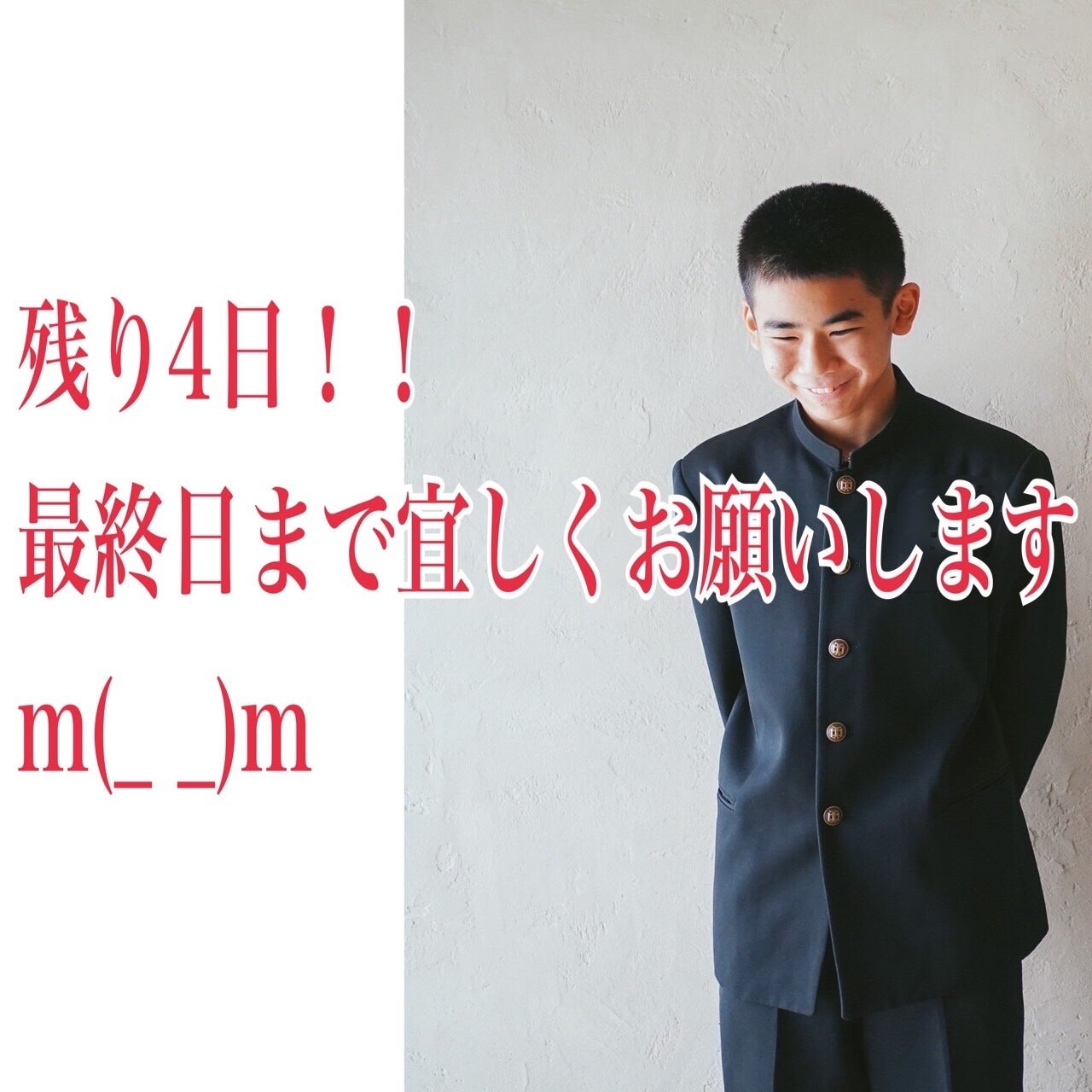 いよいよ、クラウドファンディング終了まで間近となりました。沢山のご支援本当にありがとうございます。全て、沖縄の困っている学生さんに繋がります。沖縄県は子供の3人に1人が貧困実際、この事業を通して様々なご家庭とお会いしたりお話を聞いてきました。お聞きして私も涙が出る事もありました。私の事業が沖縄の貧困問題を全て解決できるとは思っていません。でも必要とされている事業だという事は実感しています。少しだけ想像してもらえますか?学校に行きたくても制服を買ってもらえず行けない子自分にあっていないおさがりの制服を無理に着ている子祖父母に育てられていて破れたズボンを買って欲しいと言えず履き続けている子毎日洗濯アイロンで勉強の時間を削っている子心と体の性が一致していなく購入した制服を着用出来ない子子供に綺麗でない制服を着けさせていて心が痛いお母さん子供の成長にお金がかかり泣きたいお母さん朝から夜まで働きづくめのシングルマザーのお母さん全て実際当店を利用して喜んでもらえた方達のお話です。このクラウドファンディングで集まった金額は学生さんが毎日着用する学生服を安く提供する事で、様々なご家庭の家計を助ける事に繋がります。残り1日最後のお願いです。ご支援、ご協力をお願いします。