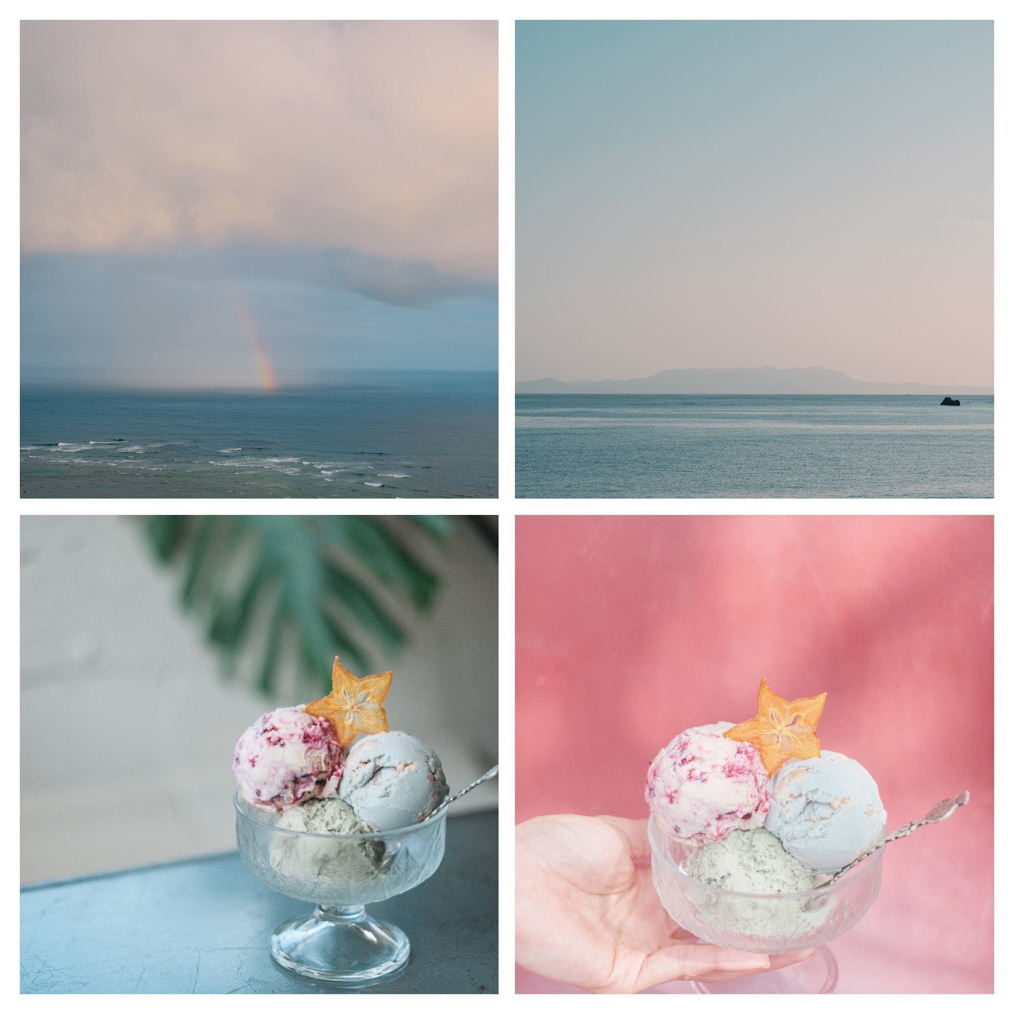 普段、沖縄県内でフォトグラファーとして活動しているわたくしですが、今回、わたしが撮影した沖縄の風景写真とカフネのアイスクリームの写真で作成したポストカード(3枚セットと9枚セット)と、プリント写真をご用意させて頂きました。
