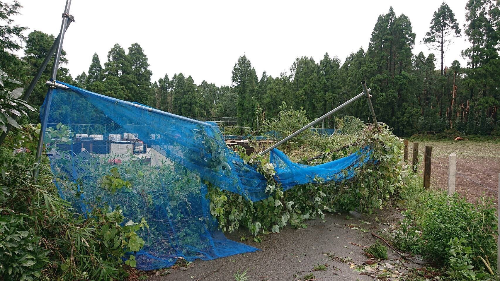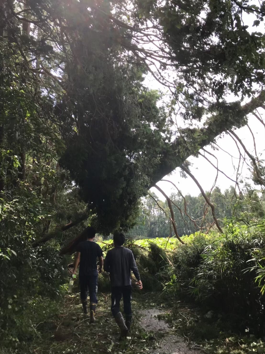 2019年の台風でGERONIMOまでの道を木々が倒れ封鎖されており入れなくフィールドもとても人が入れない・電気も暫く来ないという状況となってしまいました。一所懸命スタッフで復旧を行っておりましたが破損の規模が凄く、お手伝いをお願いしてボランティアの方々やプロの方の支援などのお陰で何とか少しずつ復旧をしました。