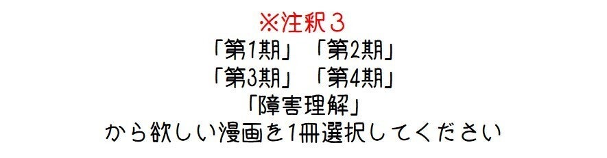 漫画1冊コースは、これまでできる街プロジェクトが制作してきた「第1期」「第2期」「第3期」「障害理解」に加え、今回新しく制作する「第4期」の漫画5冊のうち1冊をお届けします。