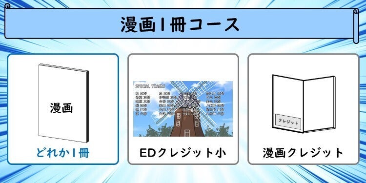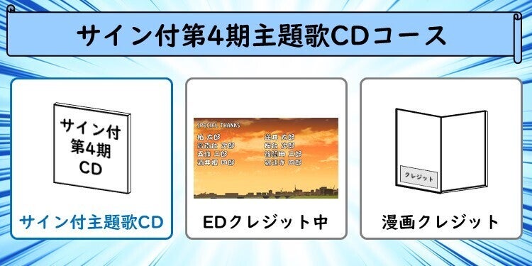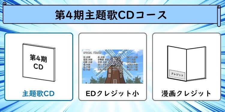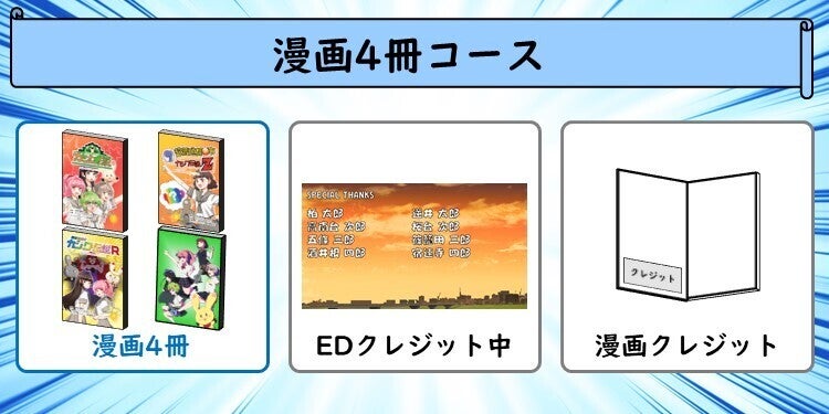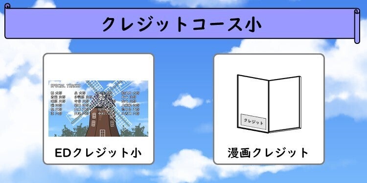 クレジットコース小は、「第4期アニメのエンディングに小サイズのクレジット掲載」「第4期漫画にクレジット掲載」をします。