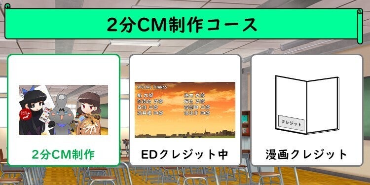2分CM制作コースは、アニメの尺を2分程度で制作します。