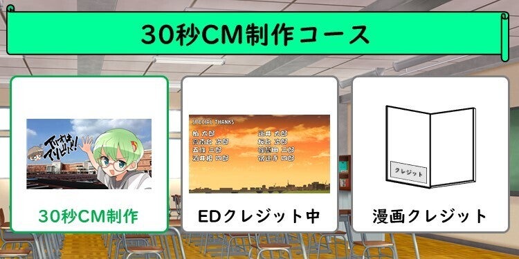 30秒CM制作コースは、アニメの尺を30秒以下で制作します。