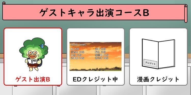 作品参加コースでは、「ゲストキャラ出演コース」「ゲスト声優コース」の2種類があります。