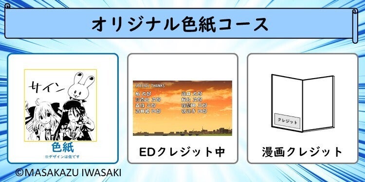 グッズコースでは、「漫画1冊コース」「漫画4冊コース」「オリジナル色紙コース」の3種類があります。
