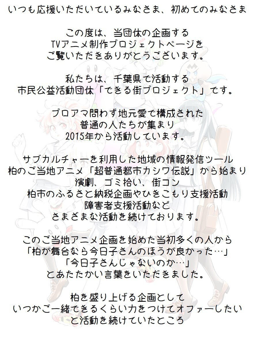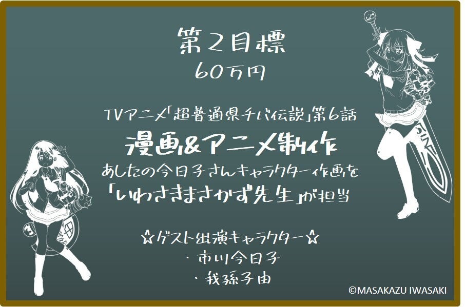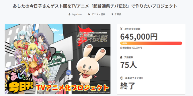 おかげさまで【あしたの今日子さんゲスト回をTVアニメ「超普通県チバ伝説」で作りたいプロジェクト】を無事達成することができました。
