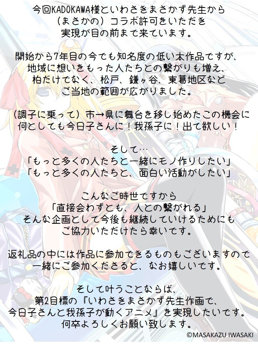 2022/04/01 22:50みなさん、こんにちは。「あしたの今日子さんゲスト回をTVアニメ「超普通県チバ伝説」で作りたいプロジェクト」ページを見てくださり、誠にありがとうございます。残り1日。ついに第1目標を達成しました!!!!!!!本当に!本当に!本当に!ありがとうございます。嬉しくて言葉になりません。ここまで応援・ご支援いただき、誠にありがとうございます。さて、そんなこのプロジェクトですが、残り1日、第2目標達成を目指します。第2目標は、今回制作する作品の「あしたの今日子さん」キャラクターをあしたの今日子さんの作者である「いわさきまさかず」先生に作画いただくという内容です。連載終了から4年。新しい今日子さんの作品を、もしよければみなさんと一緒に制作できたらありがたいです。どうか残り1日よろしくお願い致します。 もっと見る残り2日!主題歌について