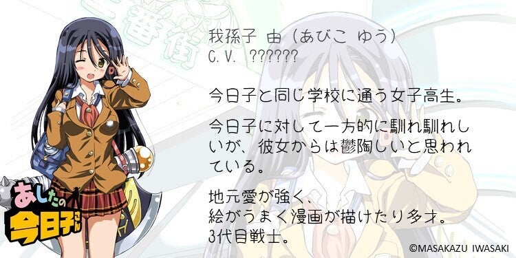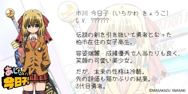 今回の作品に登場する「あしたの今日子さん」 キャラクターの声優は発表をお待ちください。