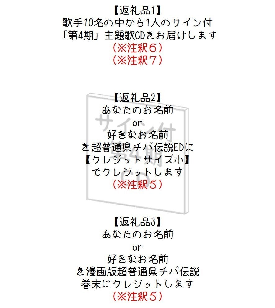 サイン付き第4期主題歌コースは、「超普通県チバ伝説」主題歌が収録されたCDをお届けします。