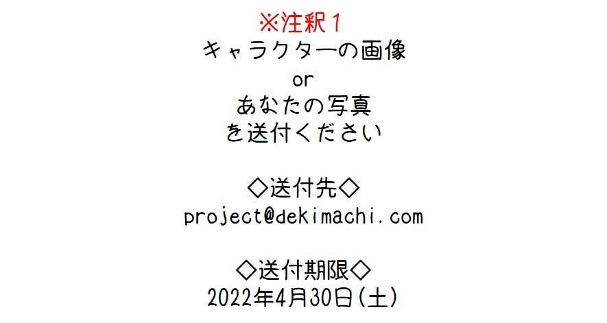 興味のある方は、事前に【project@dekimachi.com】に連絡いただき、相談できましたら幸いです。