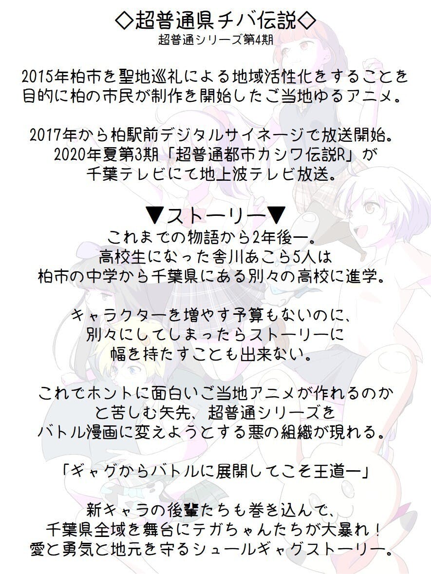 ※超普通県チバ伝説のアニメは、全10話をローカルテレビ局での地上波テレビ放送予定