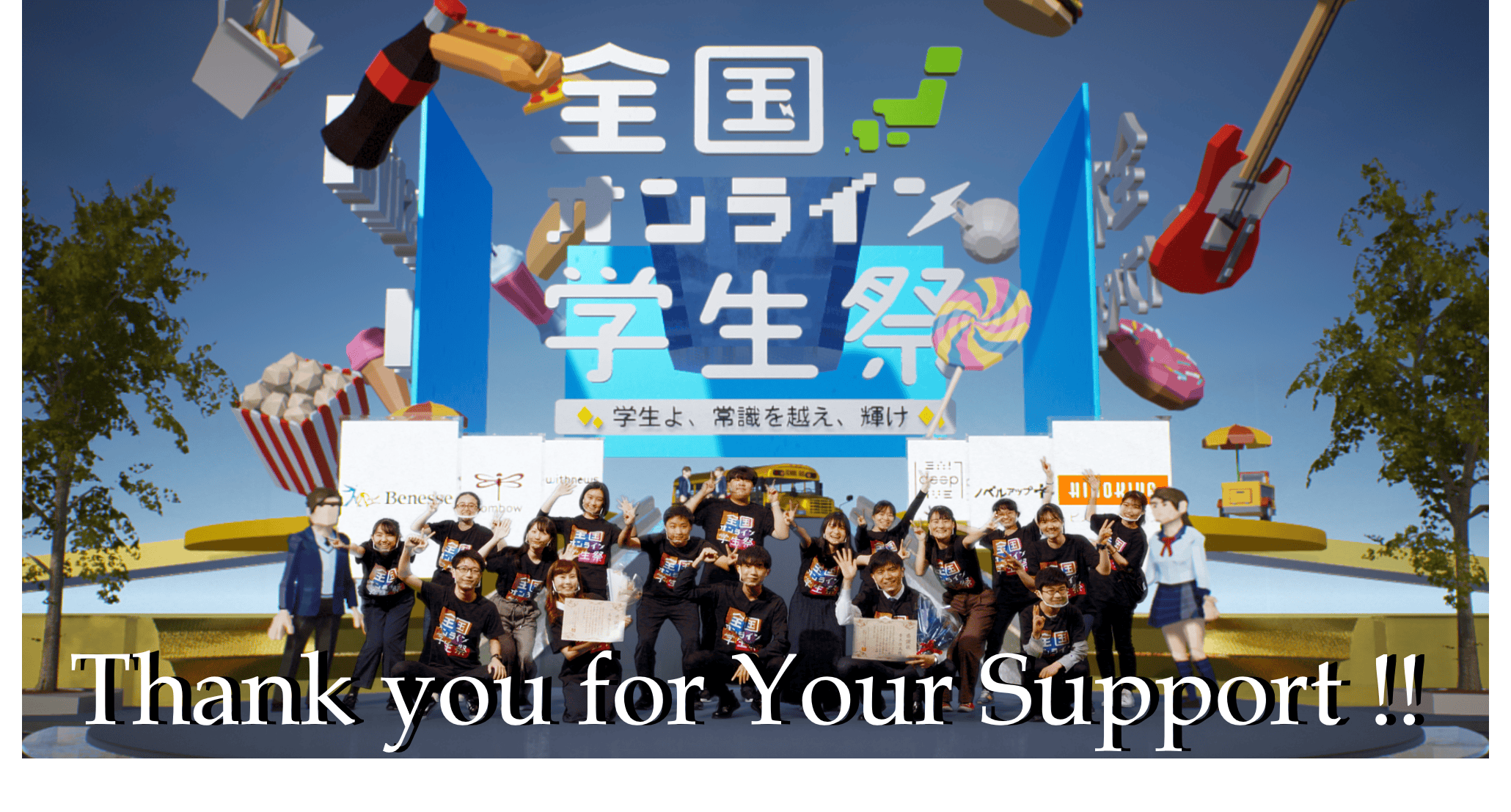 全国オンライン学生祭は、4月1日にYouTubeでライブ配信を開催する予定でしたが、諸事情により、事前に収録した動画を同日にプレミア配信する形式に変更となりました。ライブ配信を楽しみにお待ちいただいた皆様、大変申し訳ございません。
