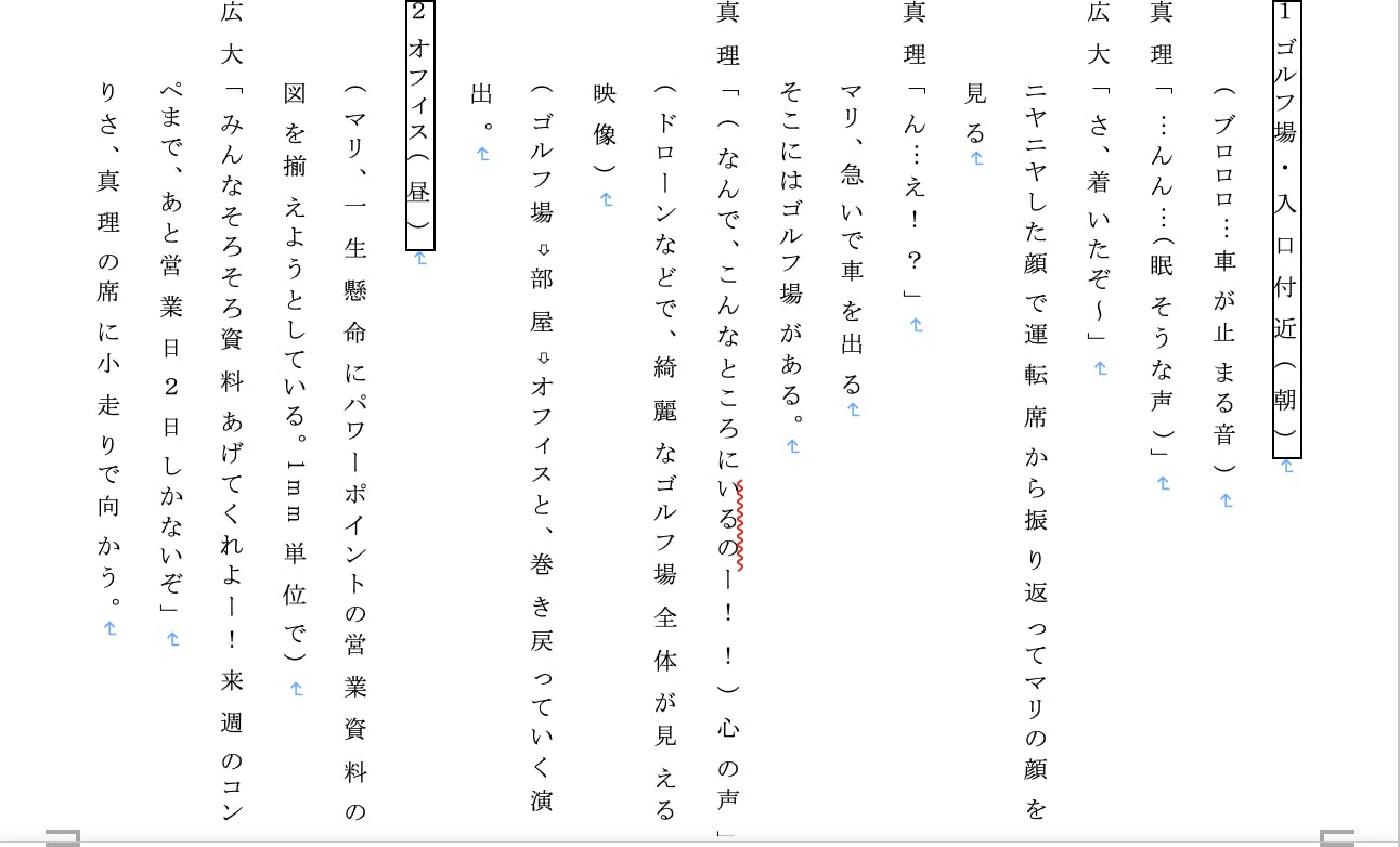 この後、YouTubeで短編映画を複数公開しているプロデューサーの方からフォーマットをもらい、ちゃんと脚本はこうなりました。笑