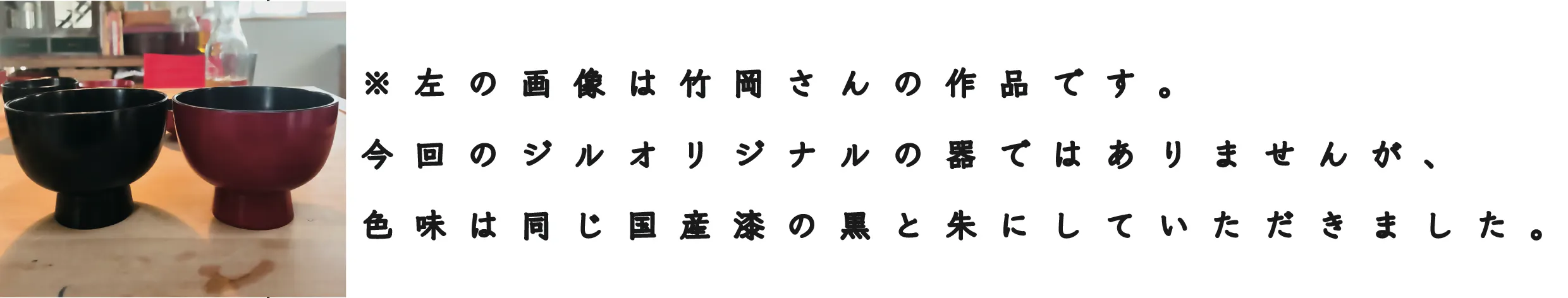 たっぷりの味噌汁に合う器は、漆作家の竹岡千穂さんに、スプーンで最後まですくいやすいこだわりのjillオリジナル椀を、現在製作していただいています。⇩⇩⇩