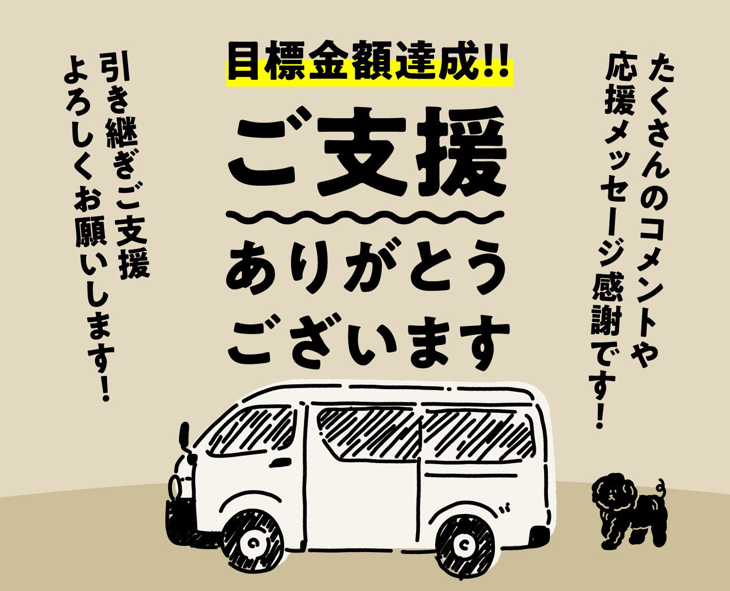 目標達成額はキッチンカーにするための改装、並びに設備費などにあてさせて頂き、達成以降のご支援金は、車体本体の返済の一部にあてさせて頂きます。