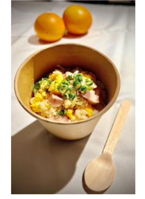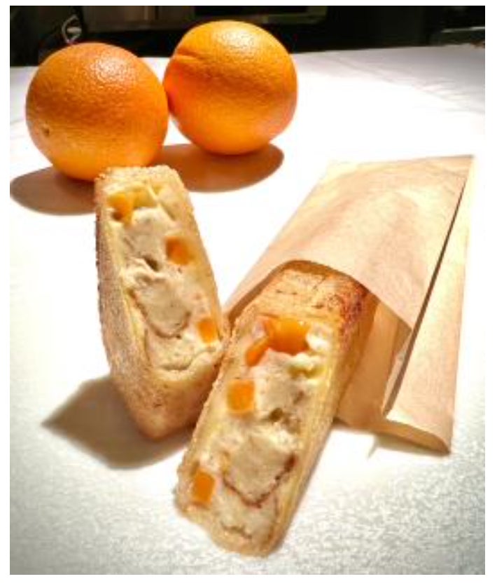 クレープ状の薄い生地にオレンジ風味にした 長崎近海魚使用した『杉永かまぼこ』と『チーズ』を包んで、鉄板で焼き上げ!美味しさのあまり、番長もビックリ!