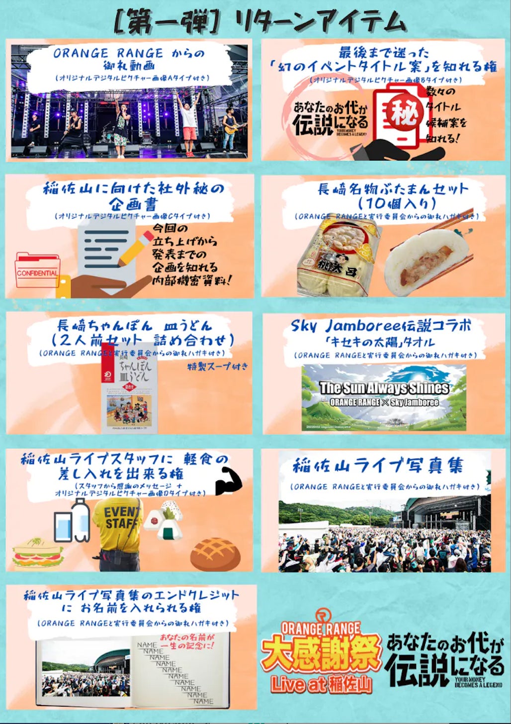 ライブ作りと同様に クラファンのリターンアイテムも ORANGE RANGEの皆さんと実行委員会の気持ちをしっかりと込めたものを お届けします!