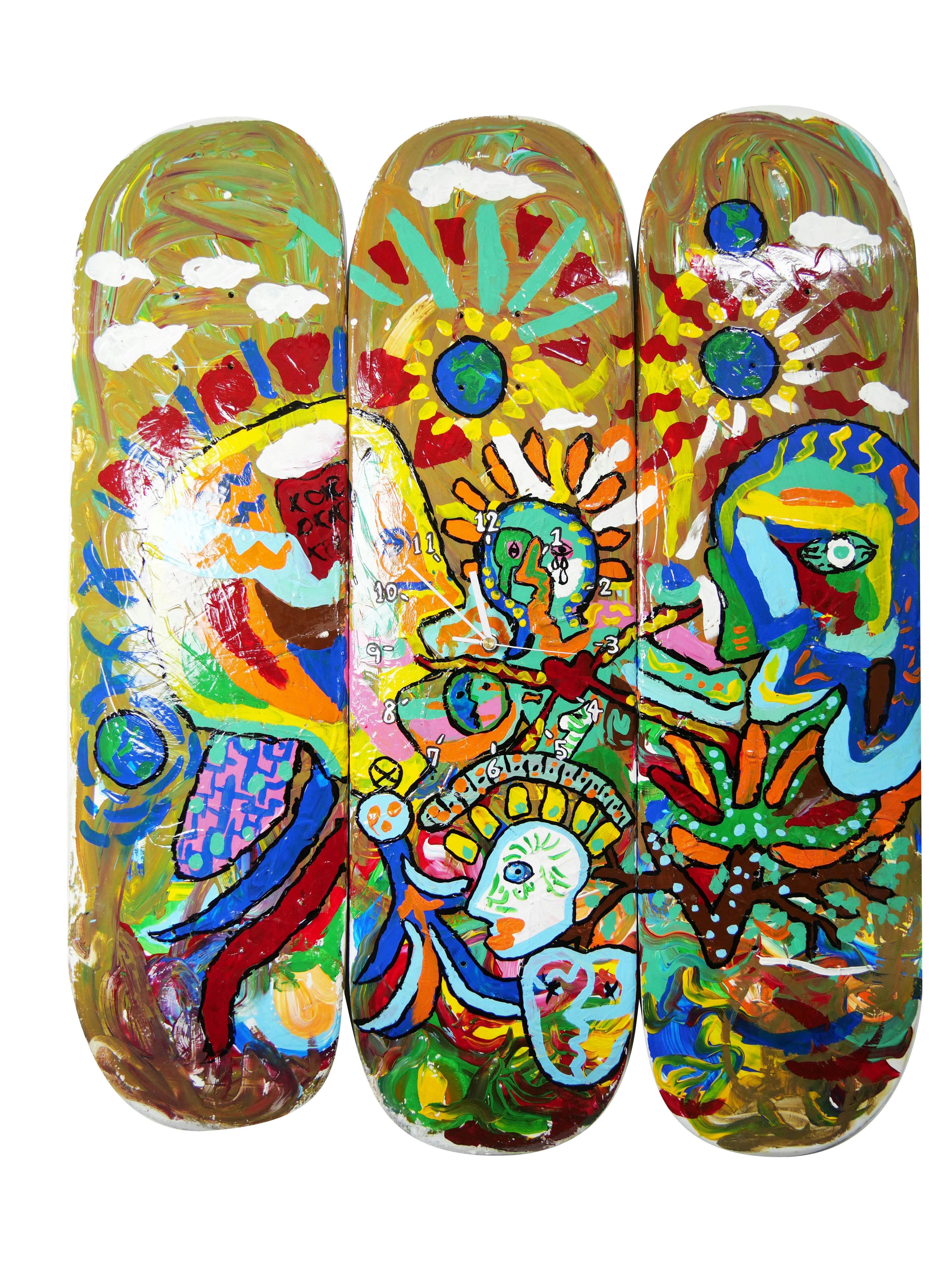 2019年3月〜 帰国後、使い終わったスケートボードに絵を描き始める。
