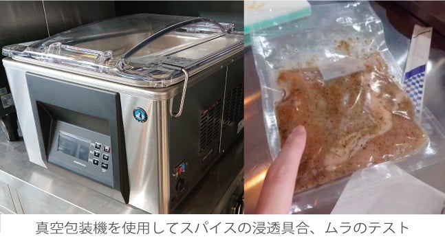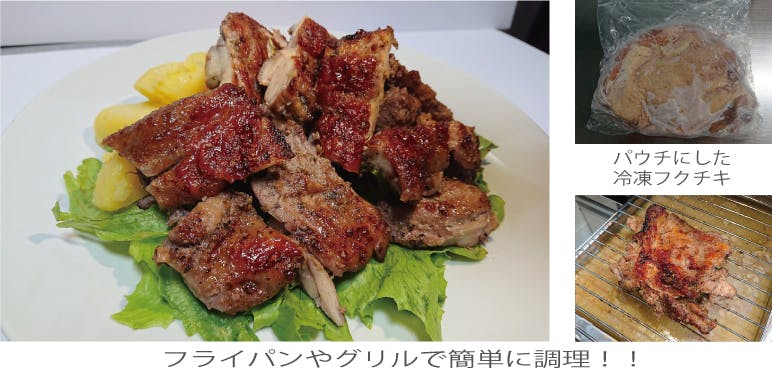 ・フクチキのスパイスを中心までムラ無く均一に浸透させる事ができて、冷凍販売に必要不可欠