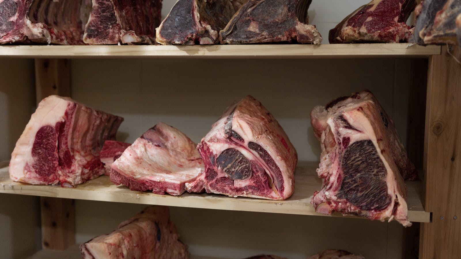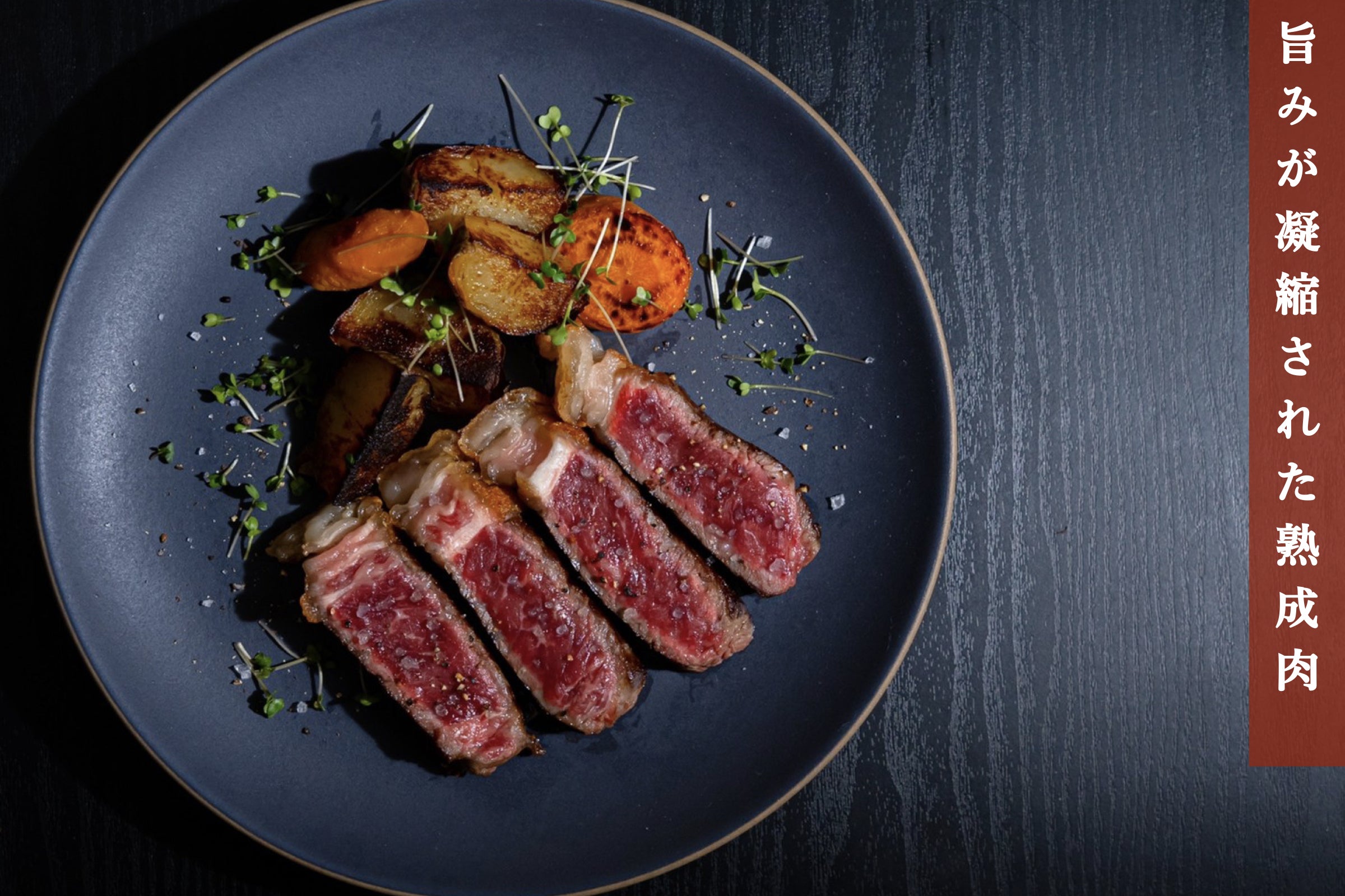 熟成肉とは温度と湿度を管理した環境で枝肉を熟成させることにより、アミノ酸が増加しうま味が凝縮された肉のことです。