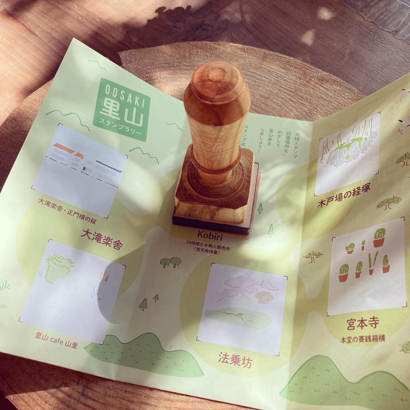 さどきこりさんのグリーンウッドワークのハンドルを里山マップのスタンプハンドルに!押すと絵が完成するスタンプラリーです。