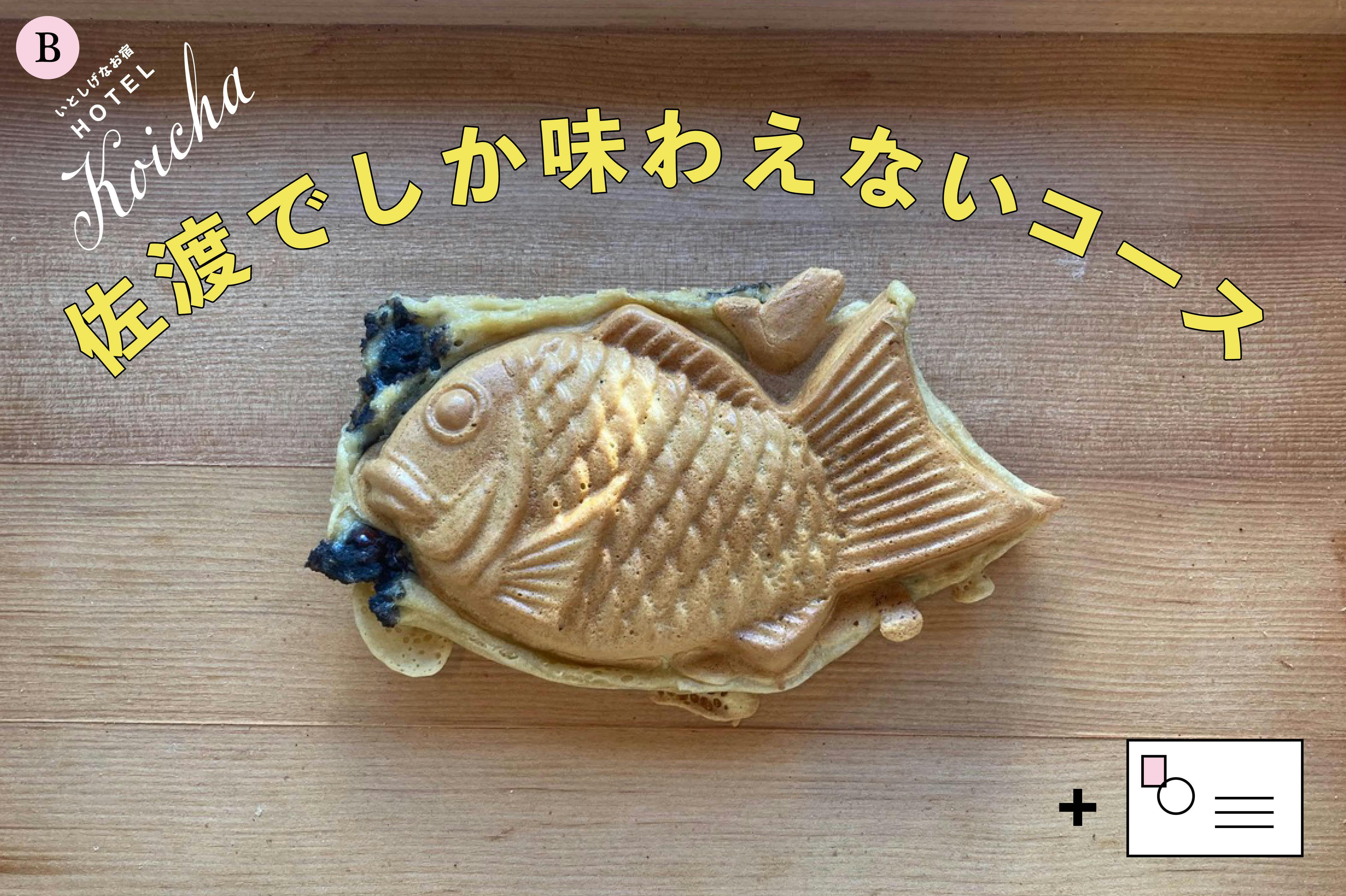 (D)~(L)は行ってみよう佐渡!ということで、いとしげなお宿「こいちゃ」に泊まっちゃおう!コースは、季節の果物の手作りシロップのウエルカムドリンクや朝食がついて結構お得なコースです!!さらに、案内誌「いとしげな小木」もついてきますよ!
